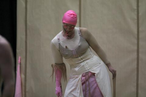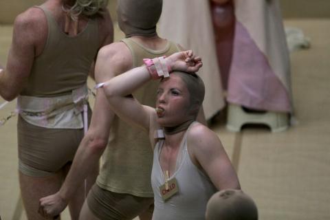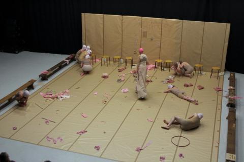 Julia is looking for an ensemble of performers to create a new manifestation of the project. This ensemble will form a generic family unit, within a gymnasium aesthetic and undergo training in order to become the meta_Family. The piece is presided over by the presence of The Step – a persona that is played by Julia as a cross between a coach, an umpire and a referee. The Step is a figure that is not connected to the Family by blood and therefore wields a particular control which is unique to the outsider.