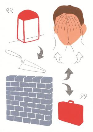 Les guillemets délimitent le terrain de jeu. Les frontières intérieures et extérieures forment un parcours à aborder selon son vécu.