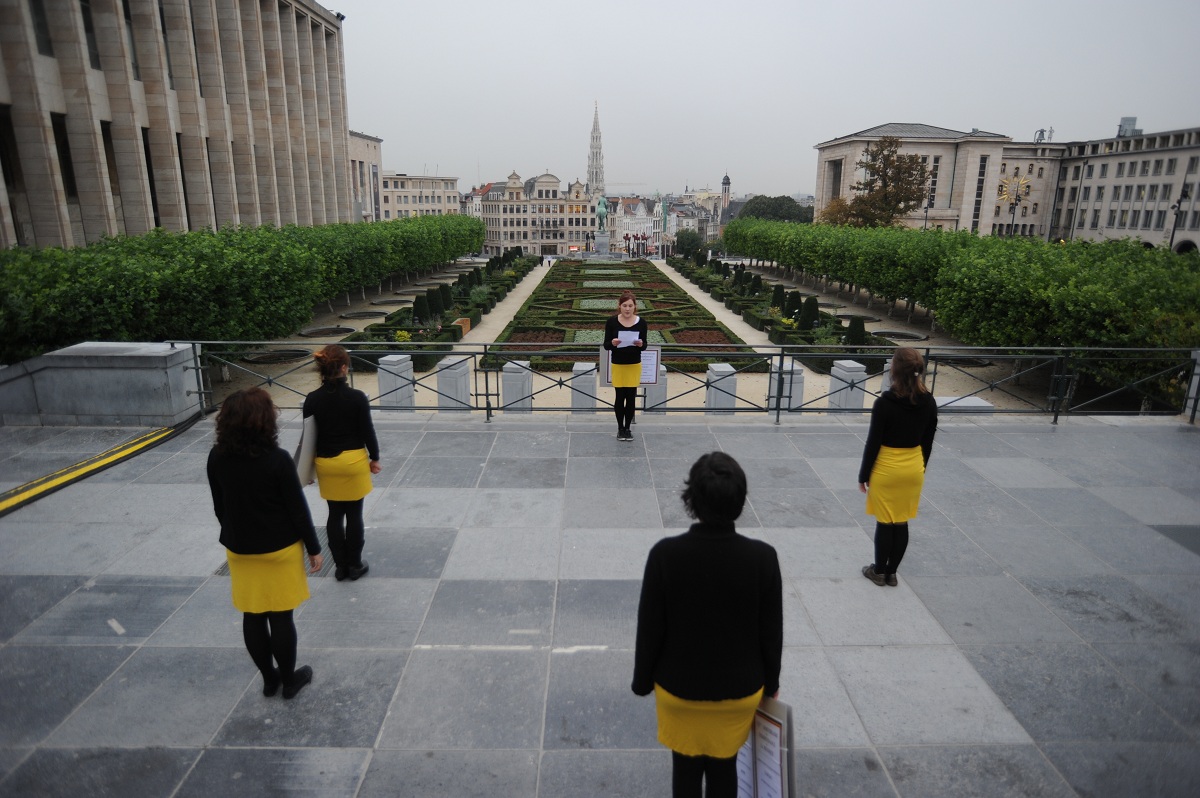Ensemble, nous explorerons les différentes possibilités de se déplacer en groupe dans l'espace public tout en considérant les notions de conflits, l'organe politique et son mode de fonctionnement. Nous analyserons et observerons la géographie politique de Bruxelles dont nous chercherons les manifestations physiques dans les temps et lieux précis où nous nous trouvons. Nous construirons ensuite des situations politiques à notre tour. A partir d’une carte géopolitique de Bruxelles que nous aurons déterminée, nous identifierons les endroits socialement chargés de la ville.